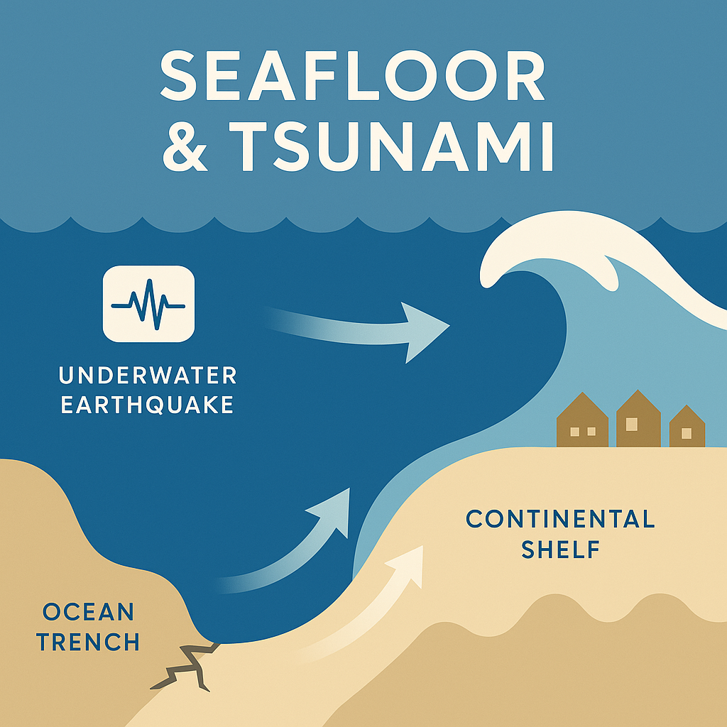 • 해저 지진: 바다 밑 지각판이 갑자기 움직이면 그 위의 물도 함께 들썩입니다.