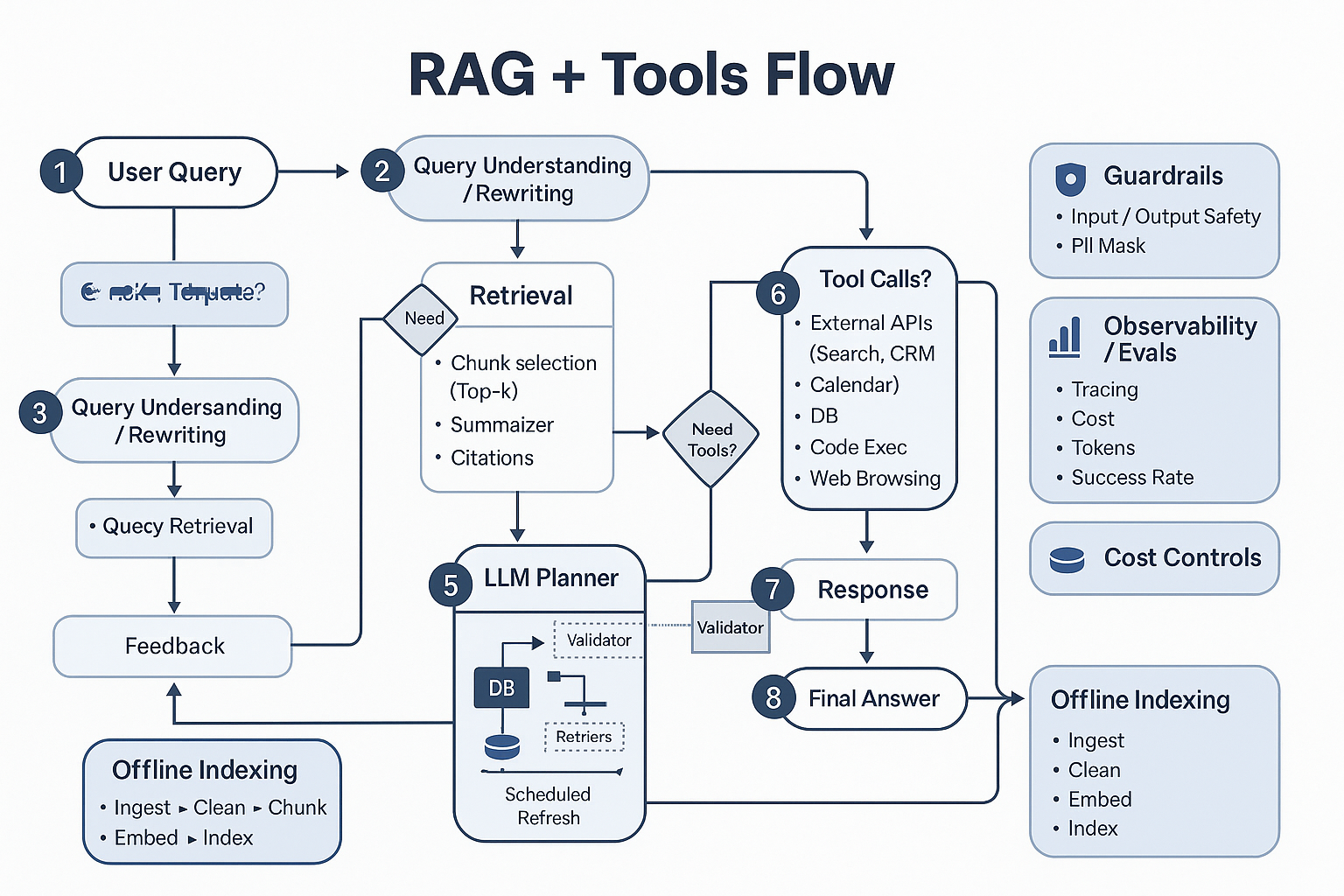 핵심 요약: RAG는 “무엇을 말할지”를 신선하고 정확하게 만들고, 도구 호출은 “무엇을 할지”를 실행 가능하게 만듭니다. 두 가지의 균형이 AI 에이전트 품질을 좌우합니다.