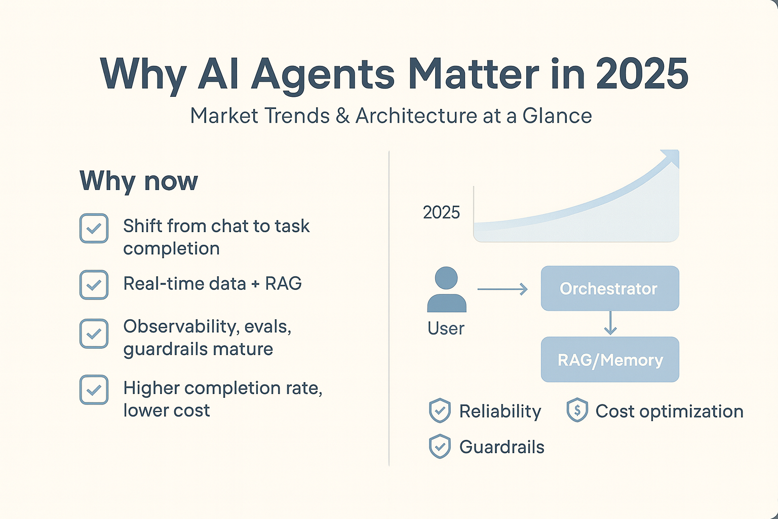 2025년, AI 에이전트를 프로덕션에 넣는 가장 현실적인 방법: 아키텍처·RAG·평가·비용 최적화까지