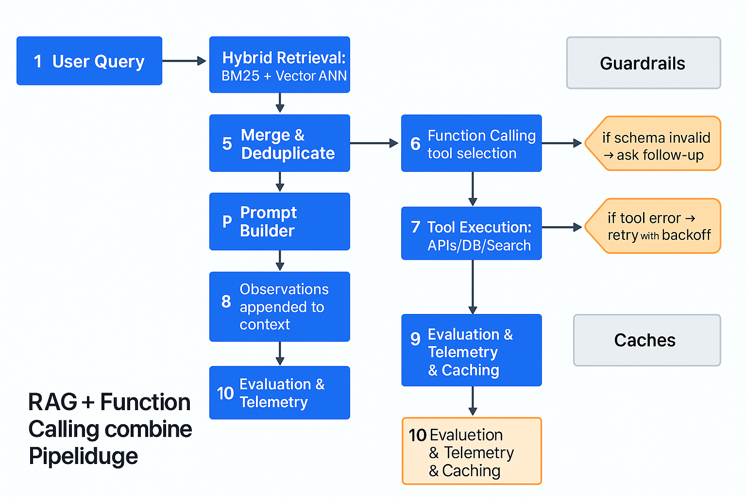 - 하이브리드 검색: BM25+벡터, 필터(제품/버전), 리랭킹(크로스 인코더).