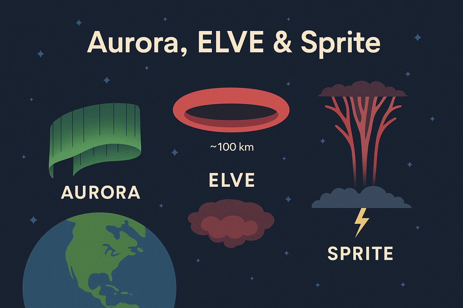 지구 대기 상층에서 펼쳐지는 신비한 빛의 쇼: 오로라, 엘브, 스프라이트란?