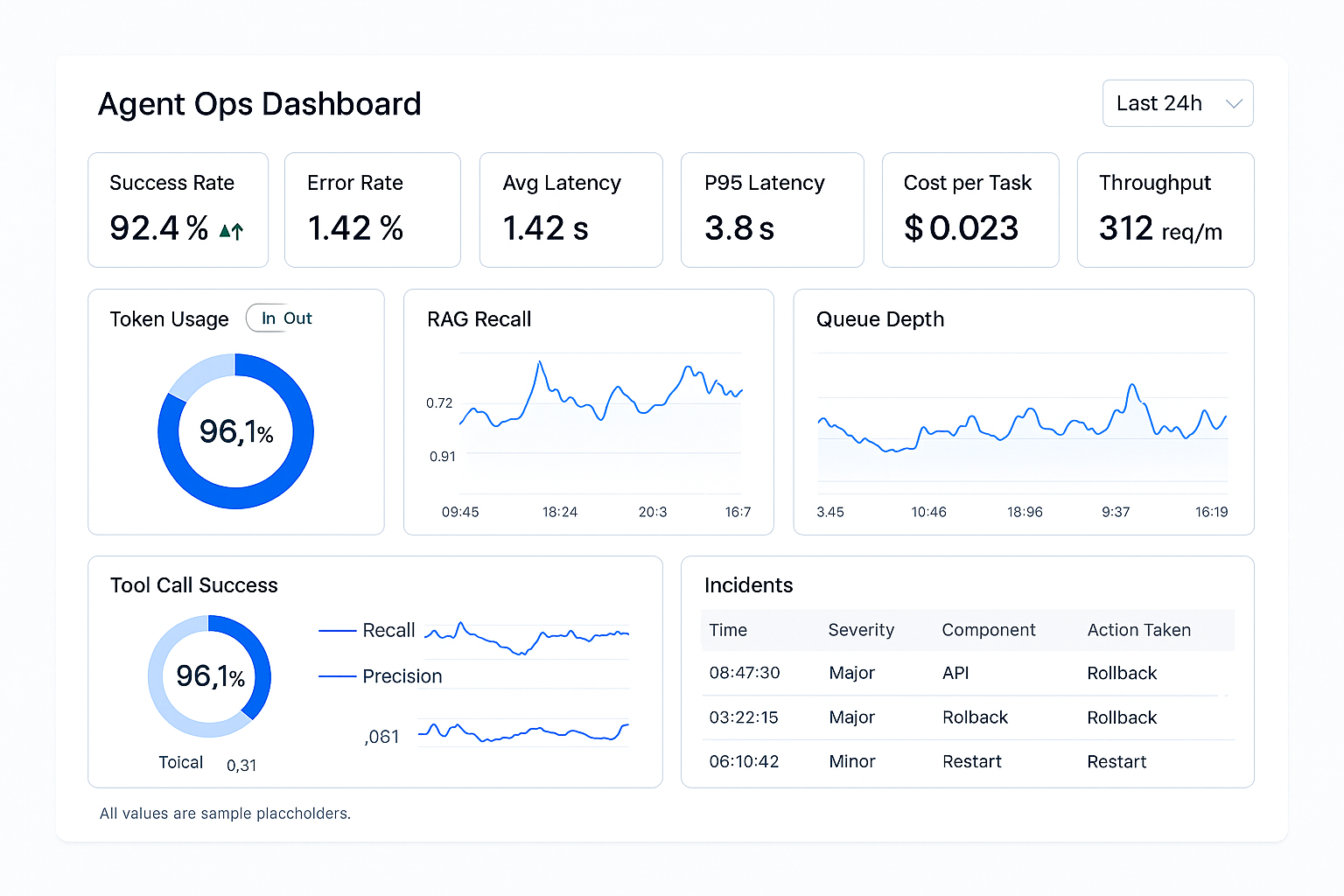 - 성공지표(Metrics): 성공률, 평균 지연, 95/99p, 비용/건, 사용자 만족도.